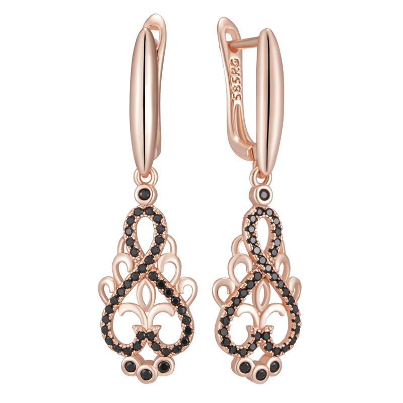 Trend Rose Gold Color Crystal Flower Long Dangle Earrings Black Natural Zircon Accessories Daily Fine Women Jewelry