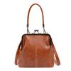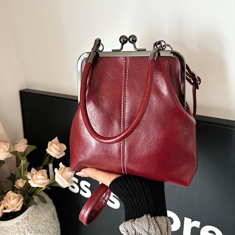 Designer Luxury Handbag with Kiss Lock Vintage PU Leather Shoulder Bag Solid Color Top-Handle Bag Retro Clip Bag Crossbody Bags