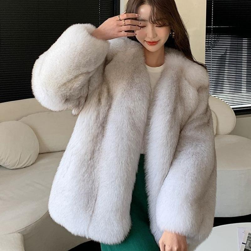 Fox fur coat women's medium and long winter new thickened light wool coat