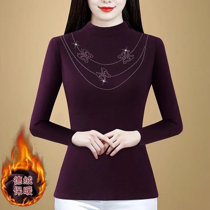 Fashionable Autumn and Winter Versatile Slimming and Age-reducing Women's Diamond Butterfly Bottoming Shirt Top