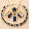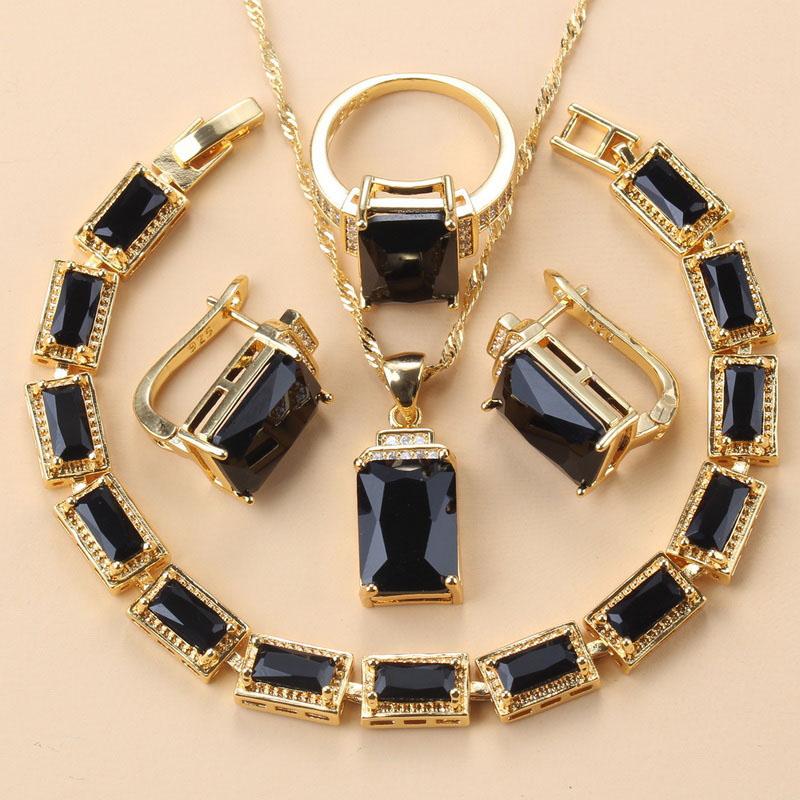 Arab Gold Color Jewelry Sets Dubai Bridal Wedding Costume Black Zirconia Bracelet Clip Earrings African Necklace Sets For Women