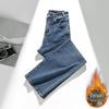 RAIN.CUN Women's High-Waisted Fleece-Lined Straight-Leg Jeans