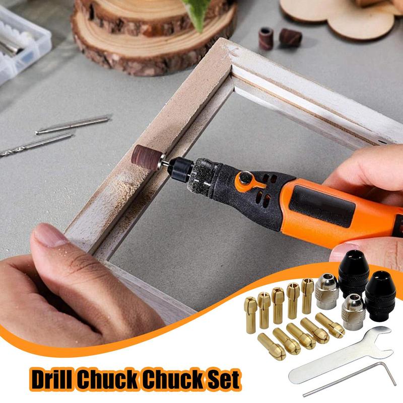 5.Widely Applicable: Effortlessly change between drill bits, sanding drums, polishing wheels, wire brushes, and cutting wheels with this Drill Chuck Collet Set, perfect for a wide range of rotary tools and various applications