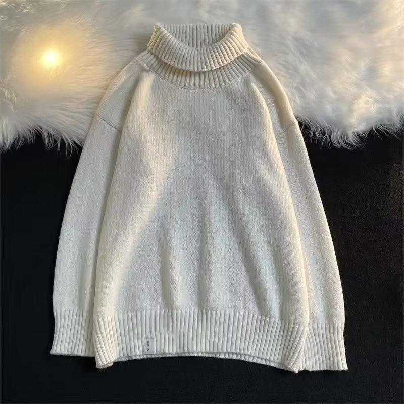 Turtleneck black sweater men's winter loose lazy style bottoming shirt large size high-end knitted sweater winter