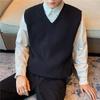 Solid color V-neck vest vest sweater men's 2025 autumn new loose knitted vest top casual trend