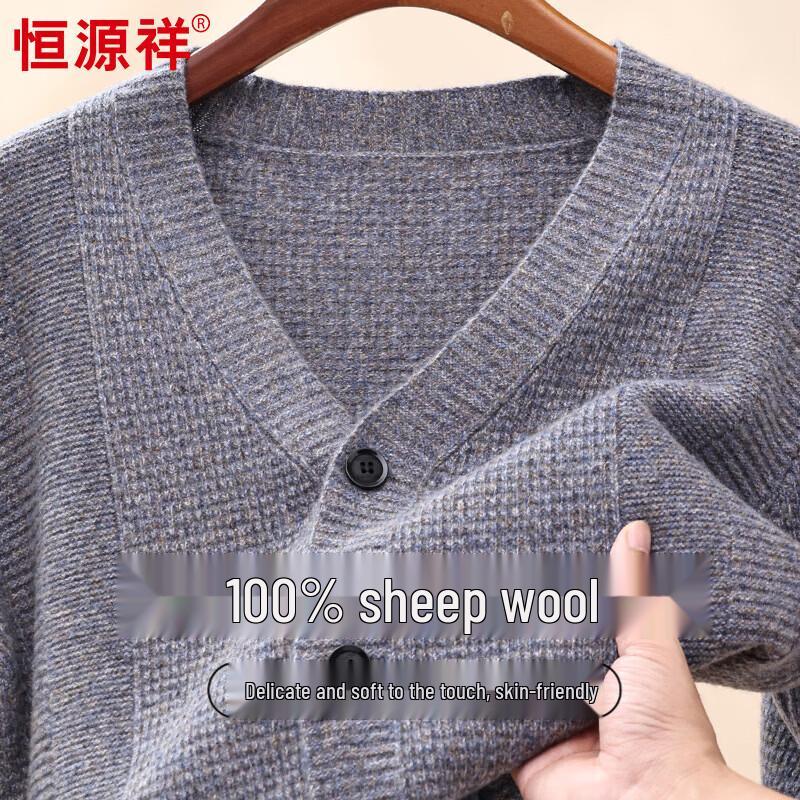 Hengyuanxiang Men's 100% Pure Wool V-Neck Cardigan