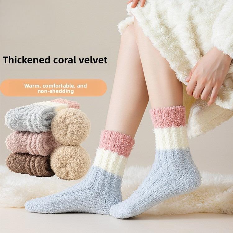 Coral Fleece Socks, Thickened for Sleep Warmth, Mid-calf Long Socks for Autumn and Winter, Long Calf Towel Floor Socks for Women