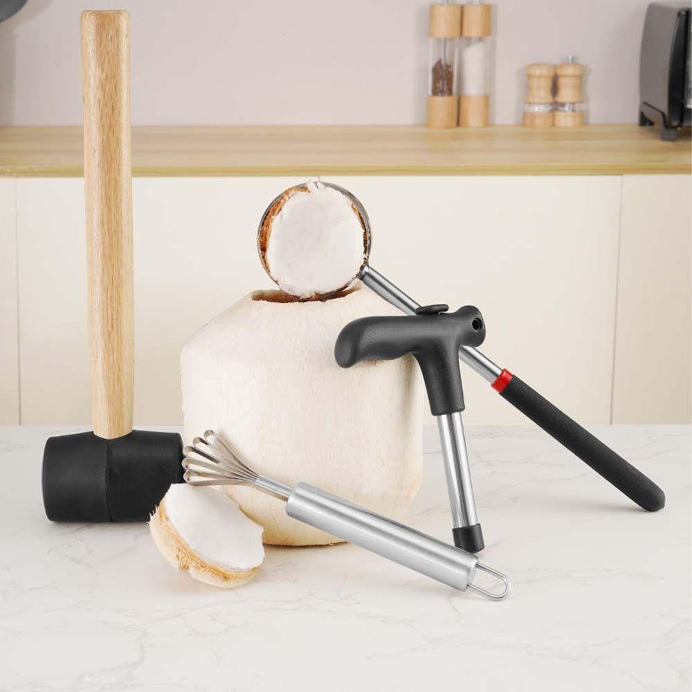 Stainless Steel Coconut Opener Tools Wooden Handle Coconut Puncher Fruit Opening