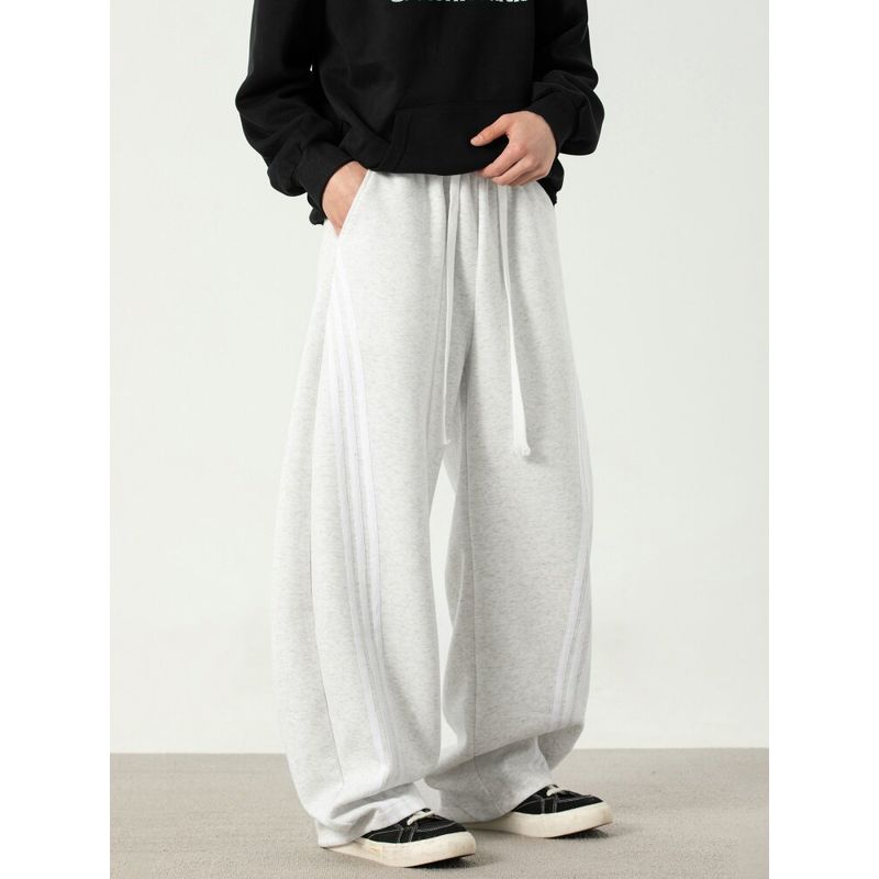 Wassup Casual Pants for Men, New Spring and Autumn Style, Trendy Brand, Heavy-Duty Three-Stripe, Loose Fit, Versatile Beige Straight-Leg Sweatpants