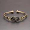 Retro bronzový květinový vzor Princeznovský náramek Klasický čistá měď Prolamovaný starožitný náramek Dámská dekorace Dárek na Den díkůvzdání