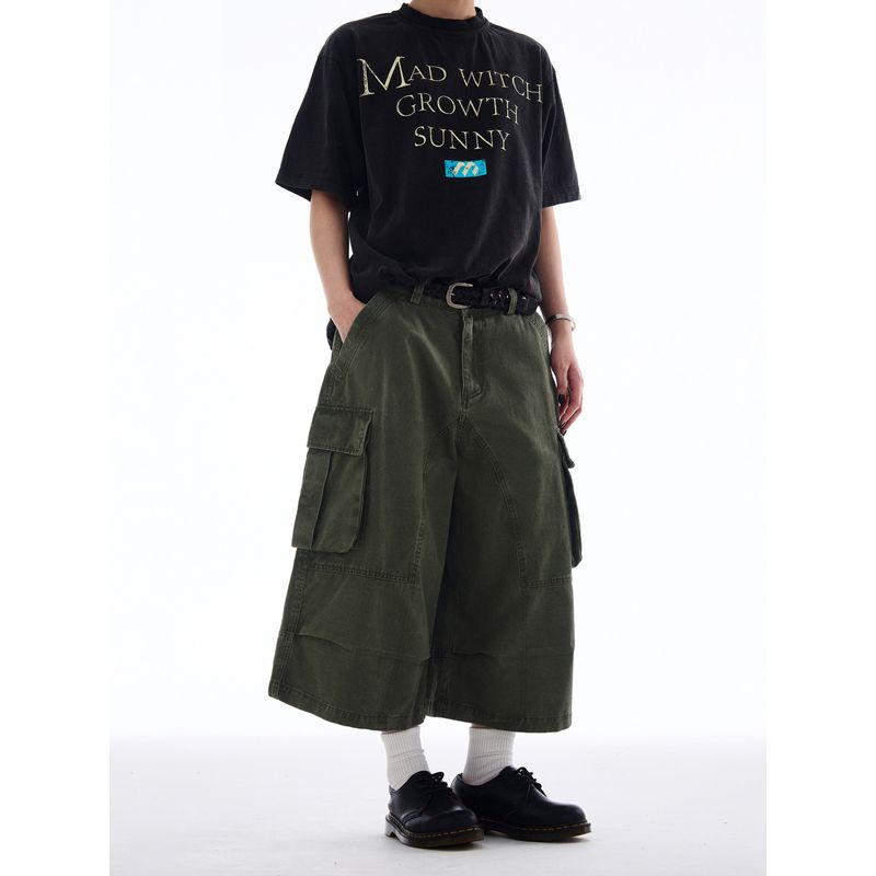 Madwitch Summer American Street Fashion Brand Distressed Cargo Shorts Men's and Women's Loose Casual Multi-pockets Cropped Pants