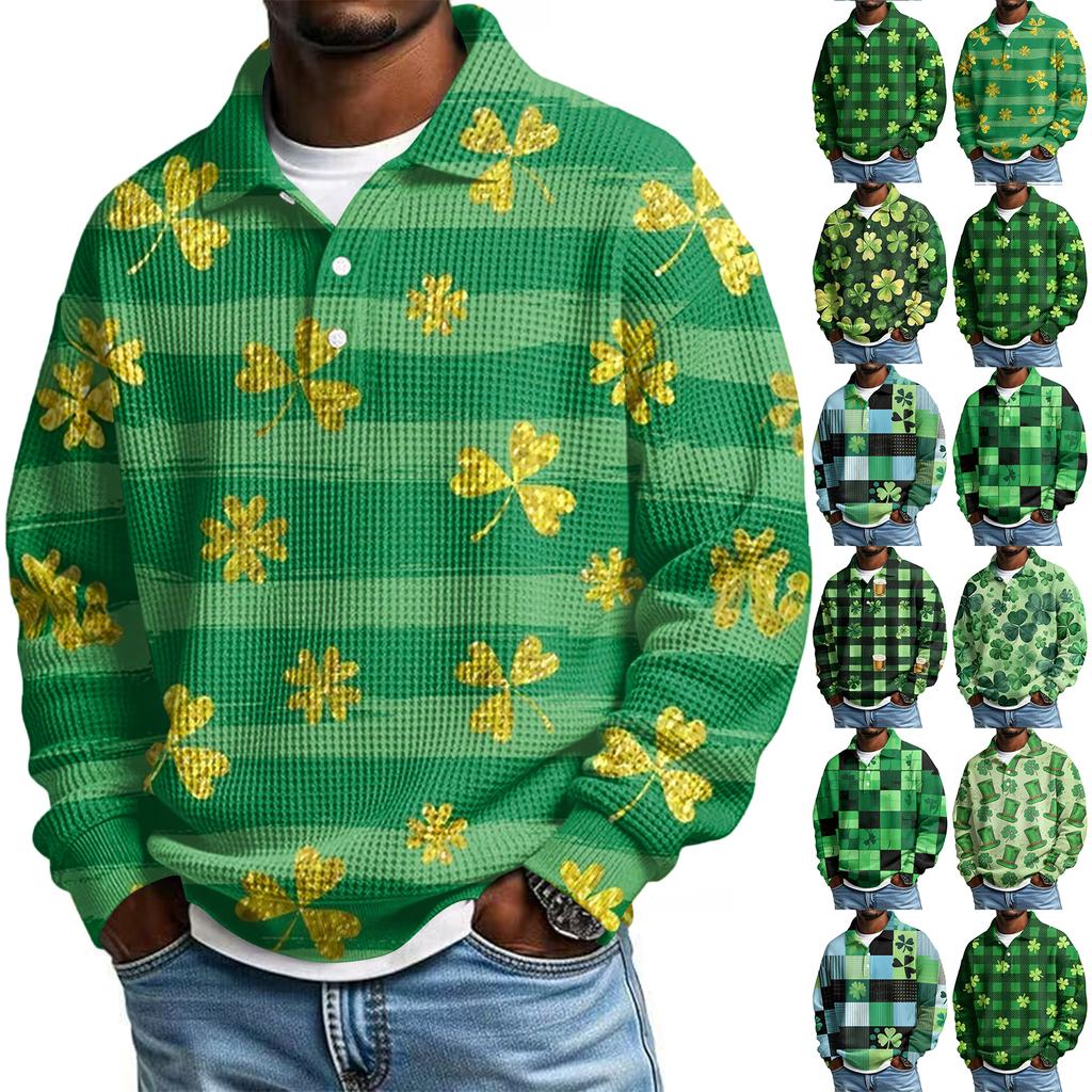 Pánská ležérní košile s krátkým rukávem, ležérní, na Svátek svatého Patrika, letní, jarní, s límcem, na knoflíky