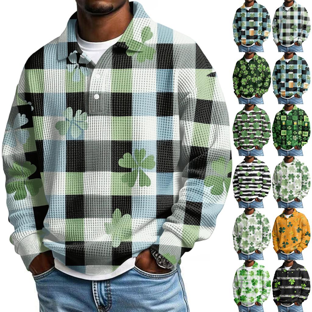 Pánská ležérní košile s krátkým rukávem, ležérní, na Svátek svatého Patrika, letní, jarní, s límcem, na knoflíky
