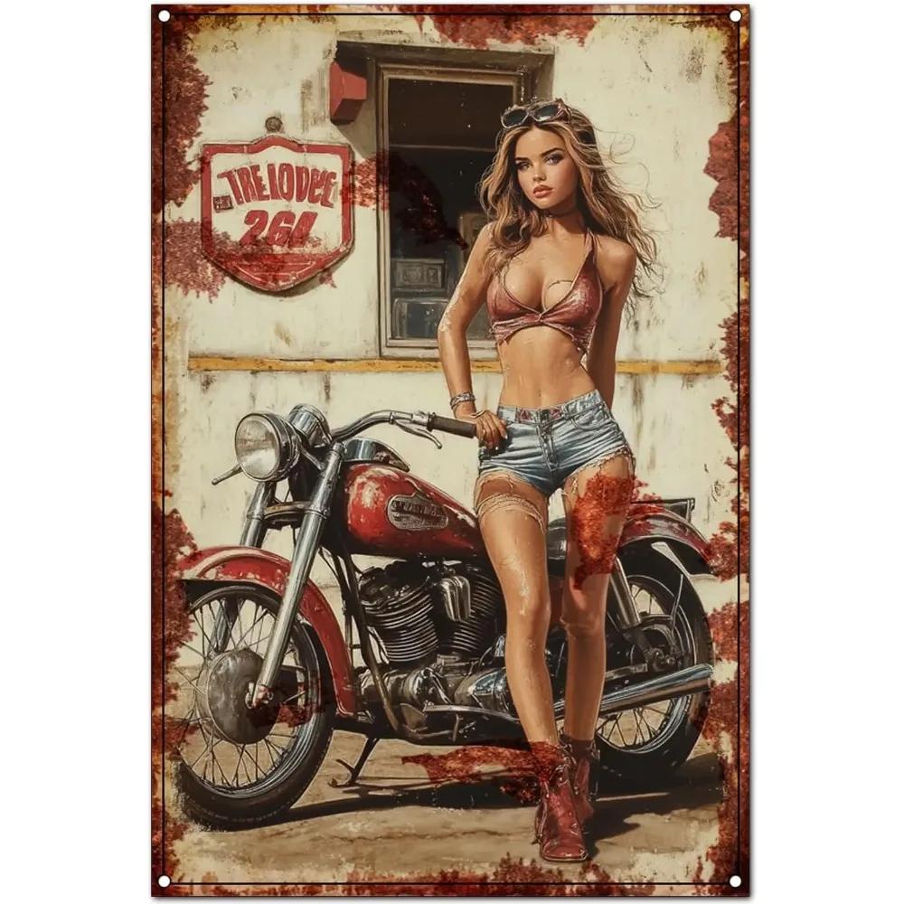 Originální Vintage plechová cedule - Nástěnná dekorace motorkářského klubu ve starožitném stylu, Zábavná retro kovová dekorace pro domácí kavárnu