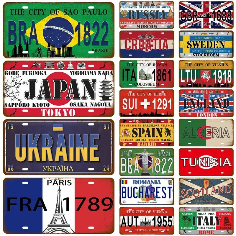 Plechový cedule s vlajkou země Francie Španělsko Německo SPZ Na zeď Domov Restaurace Řemesla Bar Dekorace Kovový cedule Mexiko USA