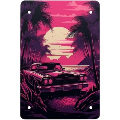 Riviera Classic Car Metal Tin Sign Tropical Sunset Wall Art Decor Gift