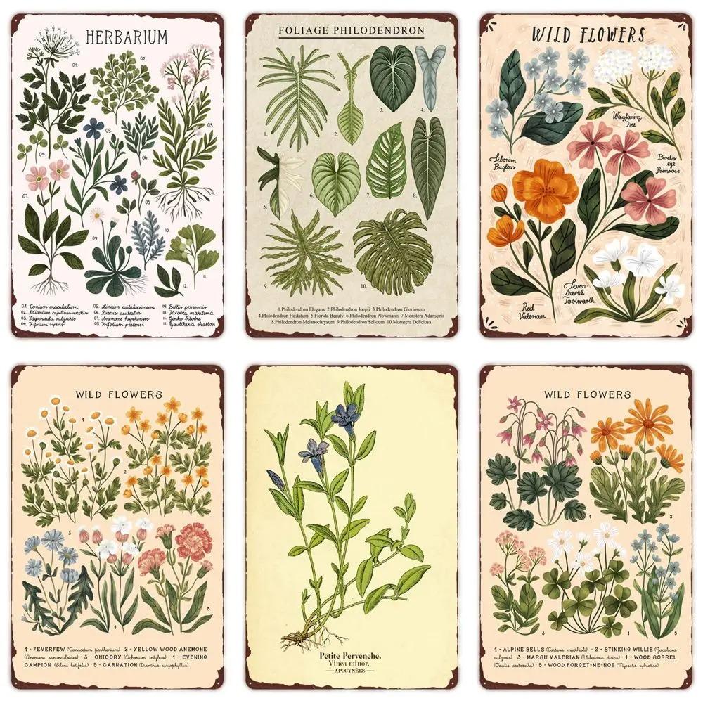 VintageWildFlowersMetalSign Vintage Metal Tin Sign - Wild Flowers Plant Herbarium Art Plaque, Kitchen/Home Wall Decor