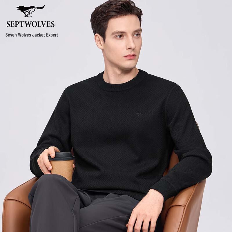 SEPTWOLVES Men's Autumn/Winter Wool Blend Pullover Sweater