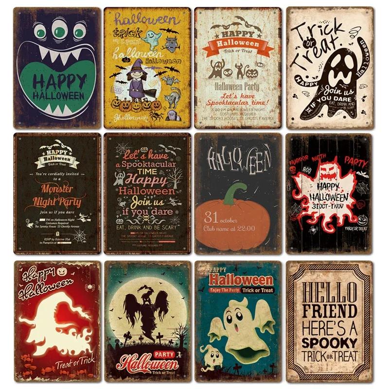 Halloween Festival Decor Plaques Kitchen Home Garage Wall Tin Sign Vintage Art Metal Signs Trick Or Treat Pumpkin Plate Poste