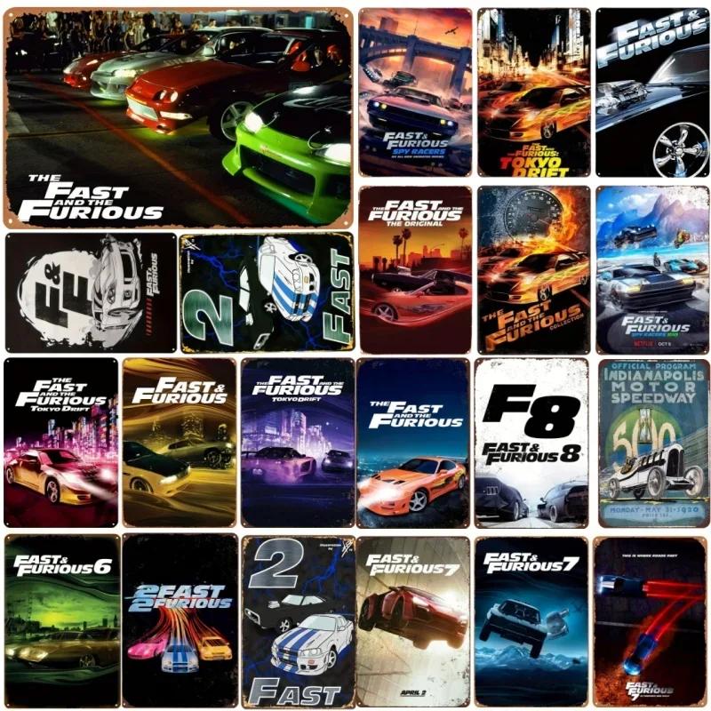 Nástěnné cedule Rychle a zběsile Vintage Regálový vůz Kovový plechový znak Plakátová deska Dekorace Bar Garáž Domácí dekorace Klasický plechový S