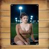 Metal Wall Decor Sign - Blonde Woman Face Poster Iron Frame Rounded Edge Home Bar Cafe Bedroom Decoration Easy Installation Holi