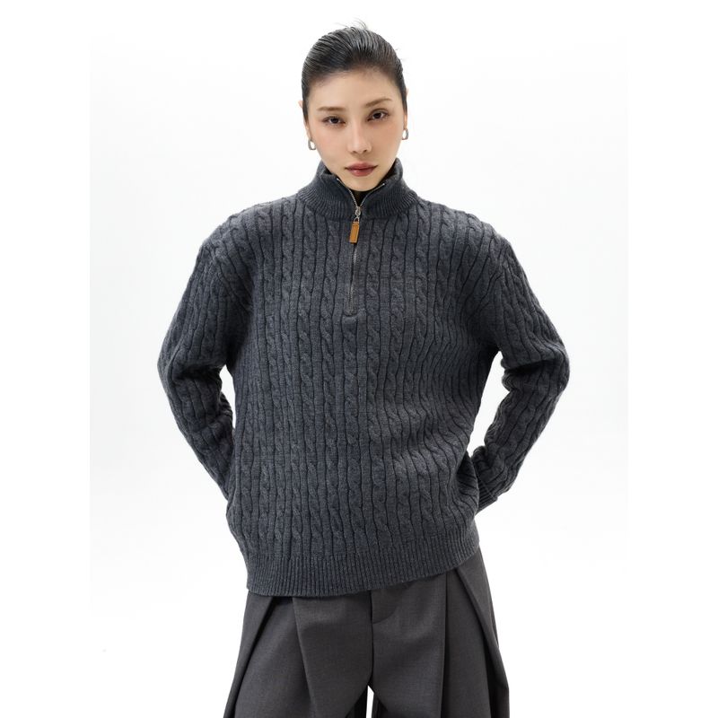 Kisko Simple American-Style Cable Knit Half-Zip Lazy Knit Sweater for Men and Women, High-End Casual Pullover Sweater Trendy