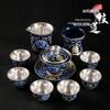 Zhuijia Blue & White Ceramic Gilt Silver Kung Fu Tea Set