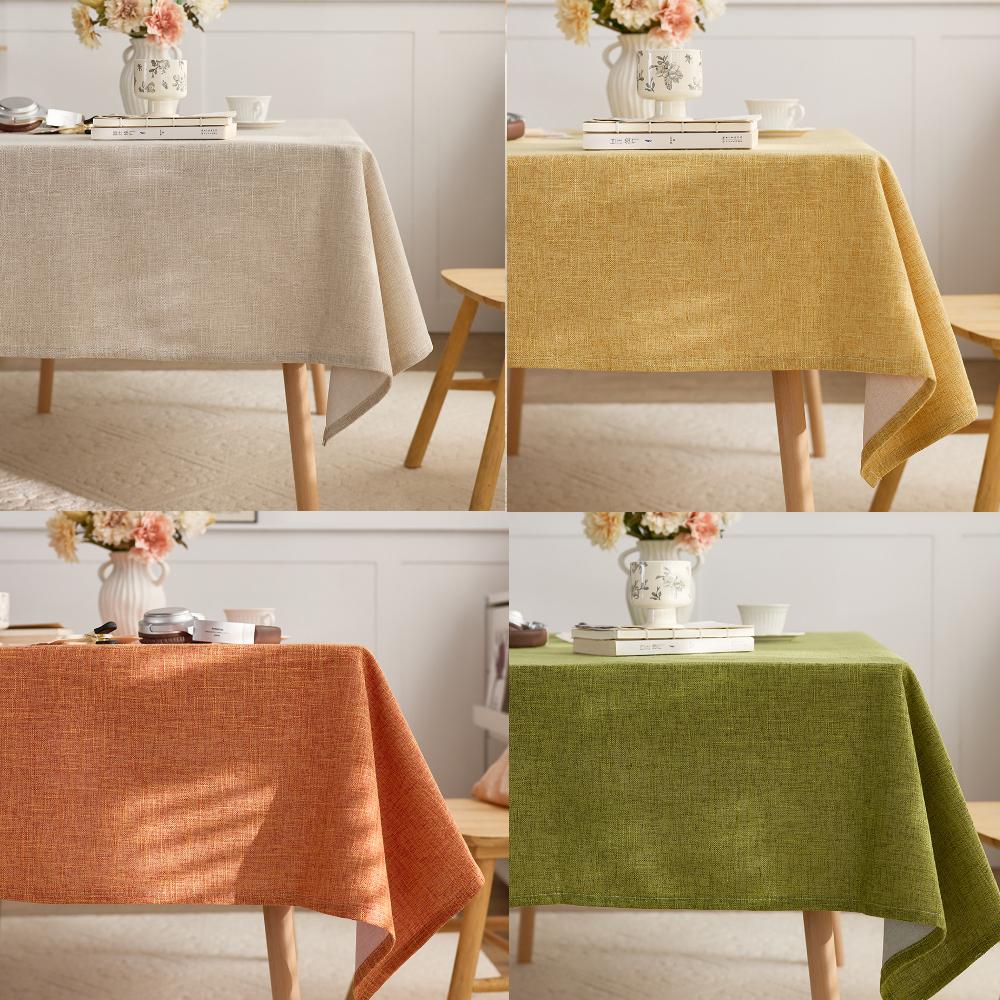 Simple Linen Style Tablecloth - Thick Solid Color Rectangular Dining Table Cover, Luxury Textured Table Runner for Center Table & Home Decor