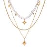 Youthway Rhinestone Star Layered Chain Pendant Necklace Women Stainless Steel Golden Metalic Waterproof Texture Necklace Jewelry