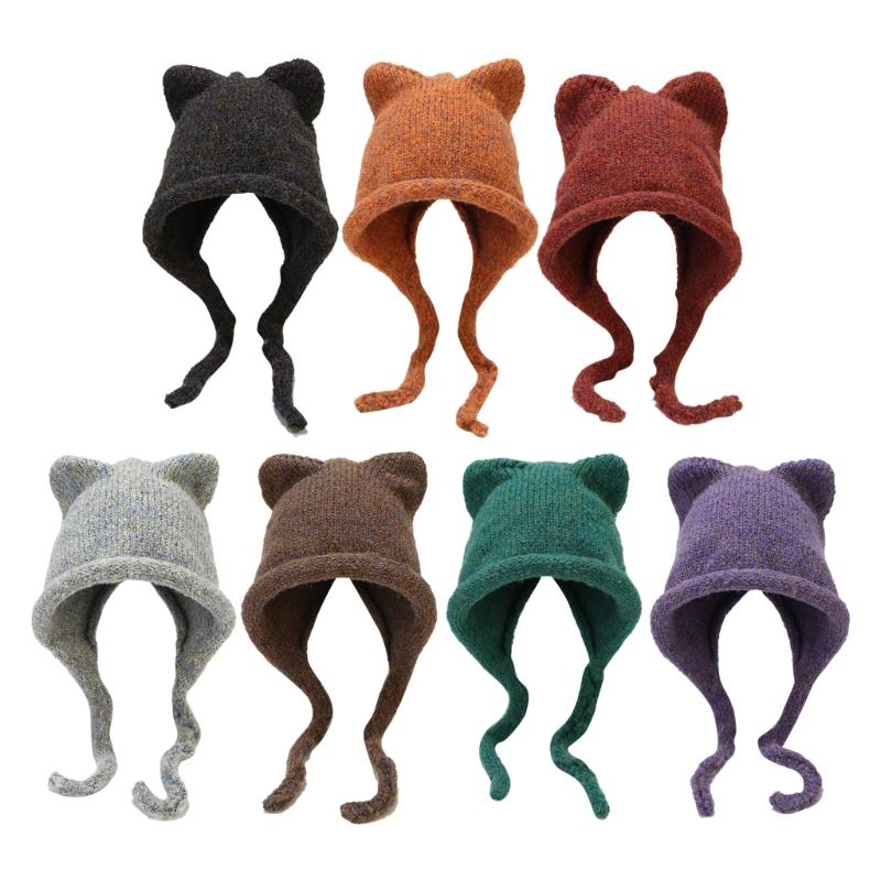 Knitted cat ear shape hat, made of high-quality acrylic fibres, which are soft, skin friendly, stretchy, lightweight and comfortable to wear.