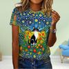 Women Casual T Shirt White Starry Night Cat Art Print For Everyday Wear And Art Lovers