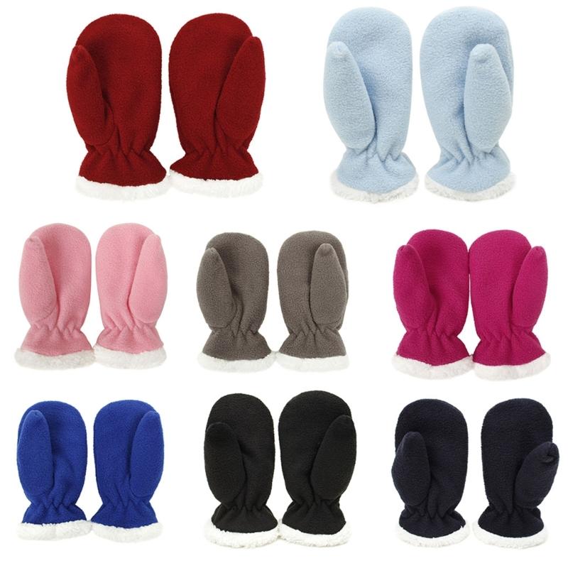 1pair Children Solid Color Plush Mittens