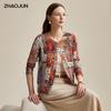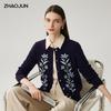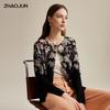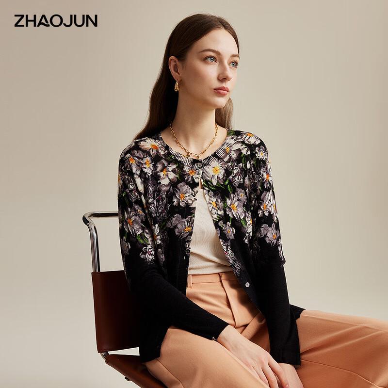 Women's Fine Wool Floral Print Round Neck Cardigan
