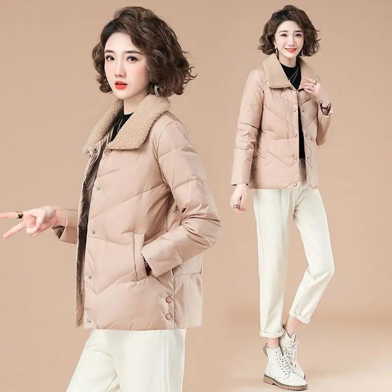 Coat Women's Short Coat Small Cotton Coat Women Women's Fashion with Fleece Lamb Wool Cotton