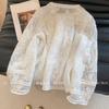 New Chinese Women's Style Shirt Short Design Puff Sleeve Chic Top Waist-closed Long Sleeves