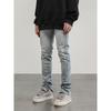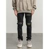 Black of Exit Original National Fashion Trousers Zip-up Slim fit Stretch Feet Jeans Men's High Street Trousers Men