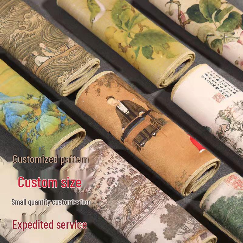 Semišová retro utěrka na čaj inspirovaná čínskou tušovou malbou - Absorpční, oboustranný podtácek pro čajové soupravy a stoly