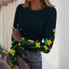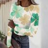 Women's Casual Fashion Round Neck St. Patrick's Day Print Long Sleeve Ribbed Top