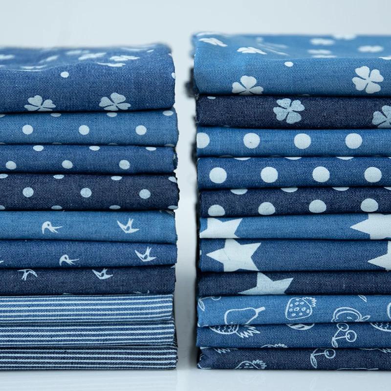 100x150cm Thin Style Washed Printed Fabric Pure Cotton Denim Fabric Summer Clothing Pants Short Dress DIY Clothing Shirt Fabric