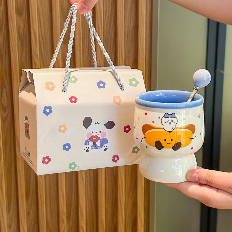 Birthday gift, girl holding a coffee cup, high-value ceramic latte cup, household drinking cup, and mug as a souvenir.