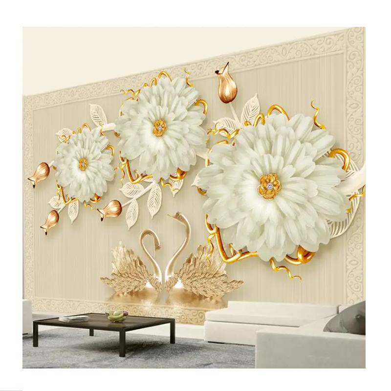 Custom Wallpaper Home Decor Fresco 3d Luxury Jewelry Flowers Wall Mural Swan Romantic 3d Wallpaper