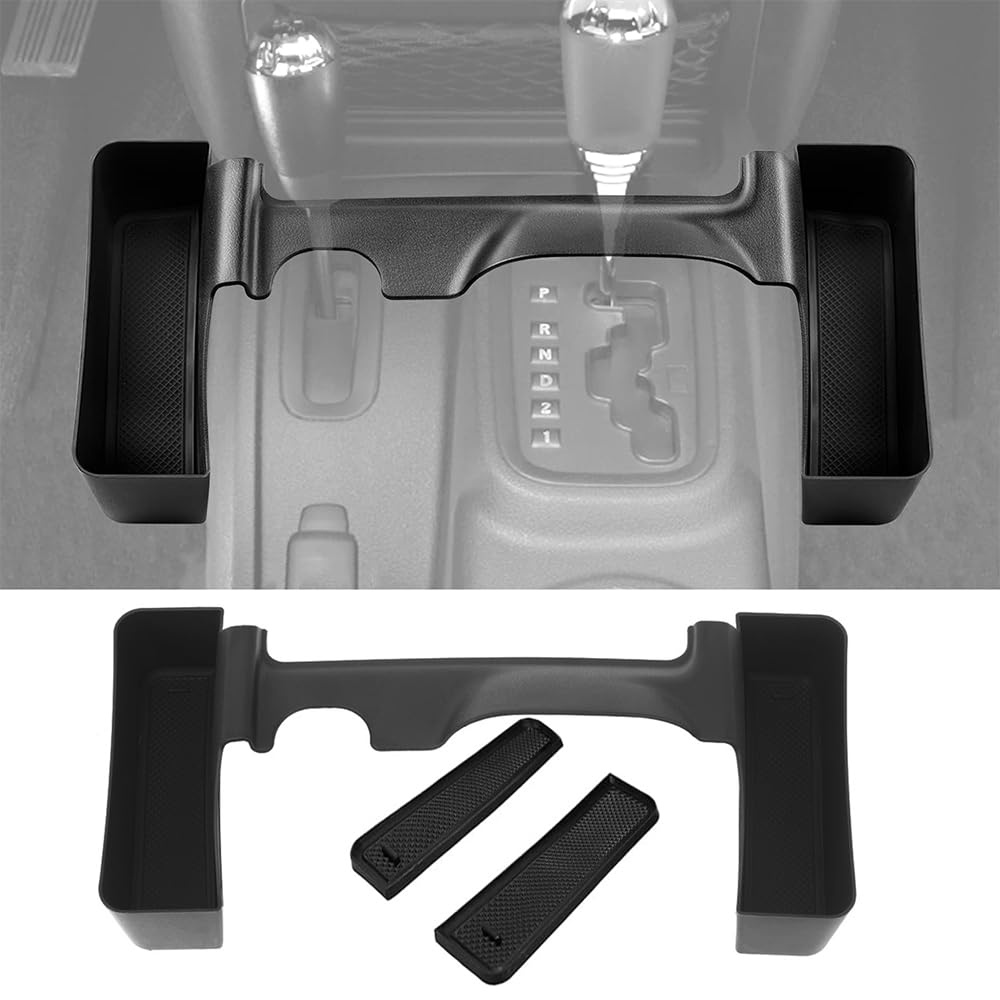 YOCTM Gear Organizer for Jeep Wrangler JK (2011-2017) - Custom Console Storage Box with Trinket Box, Card Storage, Tray for Cell Phones and Small Items, Includes Non-Slip Mat. Features: 1. The accessory is injection-molded from high-quality ABS material, and the beam is not only durable, but also features a black textured surface that seamlessly integrates with the shift console. 2. Designed based on the original vehicle model data, it fits seamlessly and does not interfere with the original vehicle's gear positioning. 3. Clever use of space structure, transforming waste into treasure, for convenient storage and neat and tidy storage. Details: 1. Product Name: Gear Shift Storage Box 2. Material: ABS 3. Fits: Jeep Wrangler JK 2011-2017 4. Included: Gear Shift Storage Box x 1 Set 5. Color: Black Instructions for Use 1. Clean the area you want to use (wipe with a cloth soaked in 50% alcohol) 2. Ensure the installation area is clean, dry and free of dust 3. Before removing the double-sided tape on the back,