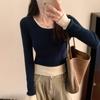 Casual chic slim-fitting contrasting shirt women's autumn new high-end sweater long-sleeved knitting