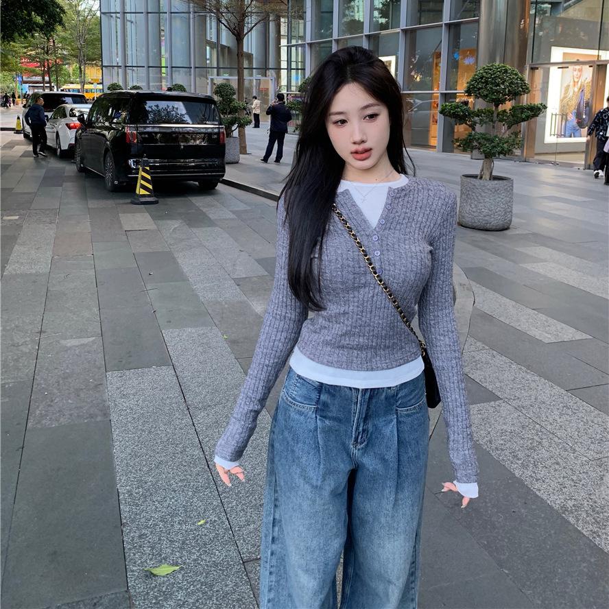 Red twist semi-open neck long-sleeved knitted sweater women's autumn and winter short slim-fit sweet Spice Girl sweater