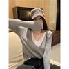 Fake two-piece splicing knitted sweater women's clothing autumn 2025 new v-neck design sense slim fit