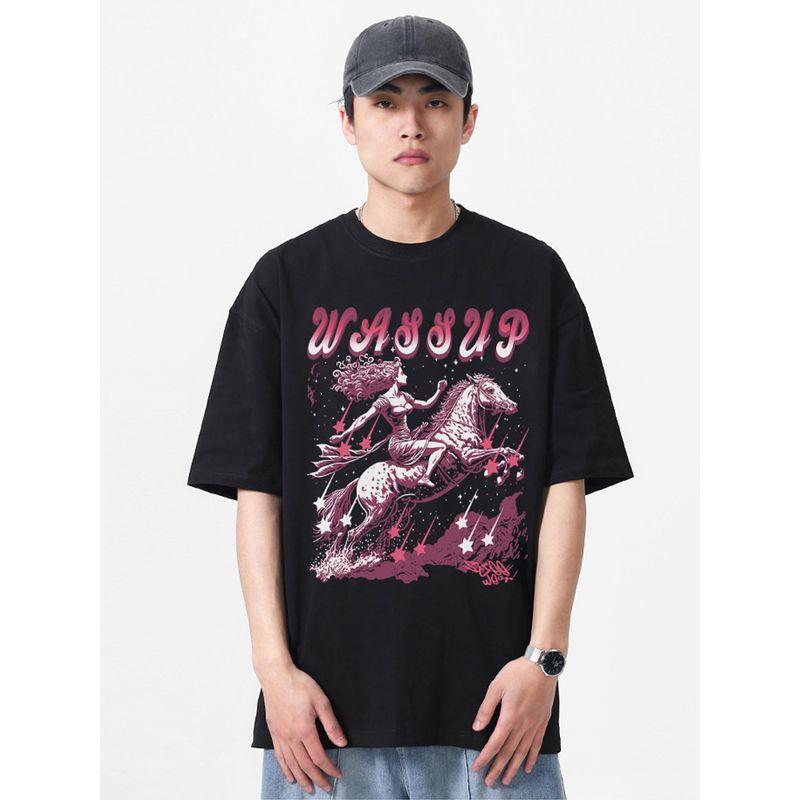 Wassup Heods Trendy Brand Design Short-Sleeve T-Shirt for Men, New Summer Style, Pure Cotton, Versatile, Heavyweight Couple Outfit