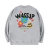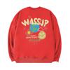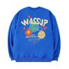 Wassup Heods Fleece-Lined Crewneck Sweatshirt for Men, Trendy American High Street Style, Loose Fit Top, Heavyweight Autumn and Winter Couple Wear