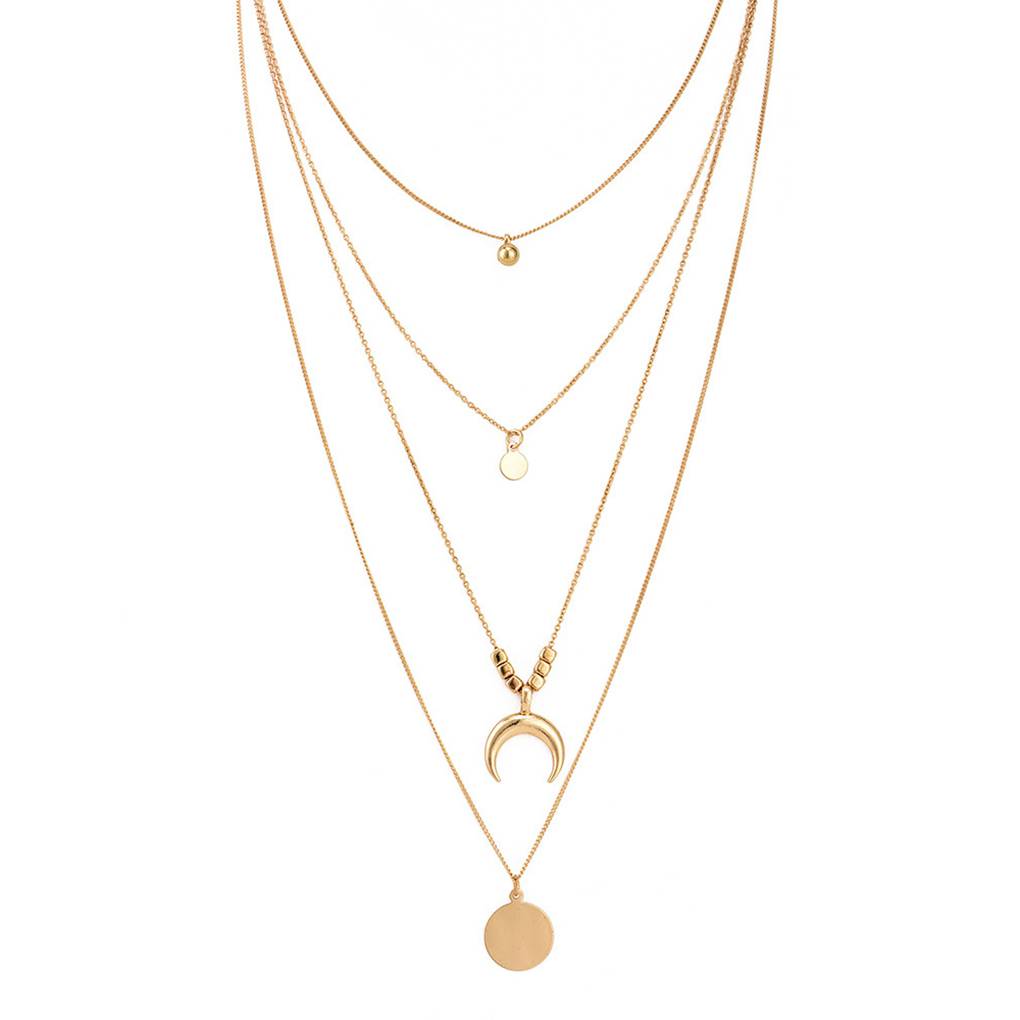 Retro Women Gold Layered Necklaces Personalized Girl Simple Style Long Pendant Chain Bohemian Geometric Choker Set
