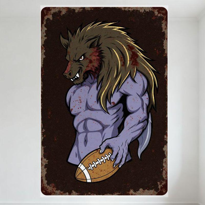 Vintage Werewolf American Football Metal Tin Sign Grungy Horror Sports Wall Decor Rusty Aged Poster for Bar Pub Home Cafe Decora