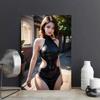 Sexy Blonde Woman with Gun Tin Sign Vintage Metal Poster for Home Bar Pub Decor, Rustic Retro Border, 8x12 Inch Metal Wall Art